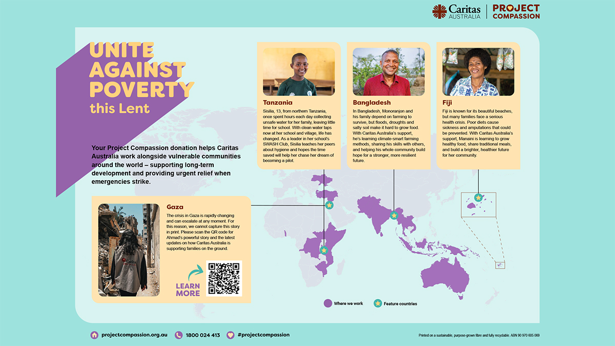 Unite Against Poverty. That is the theme for Caritas Australia’s Project Compassion 2026 appeal that will be officially.