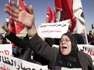 A Palestinian woman in Gaza City shouts during a protest calling for the end of Israeli sanctions against the Gaza Strip Nov. 28. At a multination conference in Maryland, U.S. President George W. Bush secured an agreement between Israeli and Palestinian leaders to resume long-stalled peace talks, while demonstrations against the summit took place in the Gaza Strip and West Bank. (CNS photo/Ibraheem Abu Mustafa, Reuters) (Nov. 28, 2007)