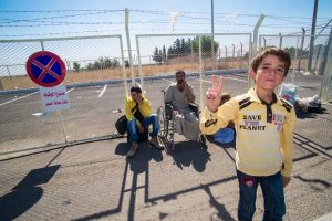 A Syrian refugee boy flashes a peace sign along the border in Kilis, Turkey, in mid-September. More than 1 million Syrian refugees are under 18, about 740,000 under 11, according to the U.N. High Commissioner for Refugees. (CNS photo/Michael Swan, The Catholic Register) (Oct. 1, 2013) See SYRIANS-CHILDREN Oct. 1, 2013.