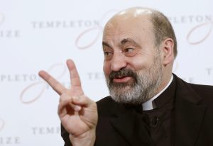 Msgr. Halik gestures during news conference after being awarded 2014 Templeton Prize in London