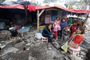 Syrian refugee children gather around a fire near their makeshift tents in central Ankara