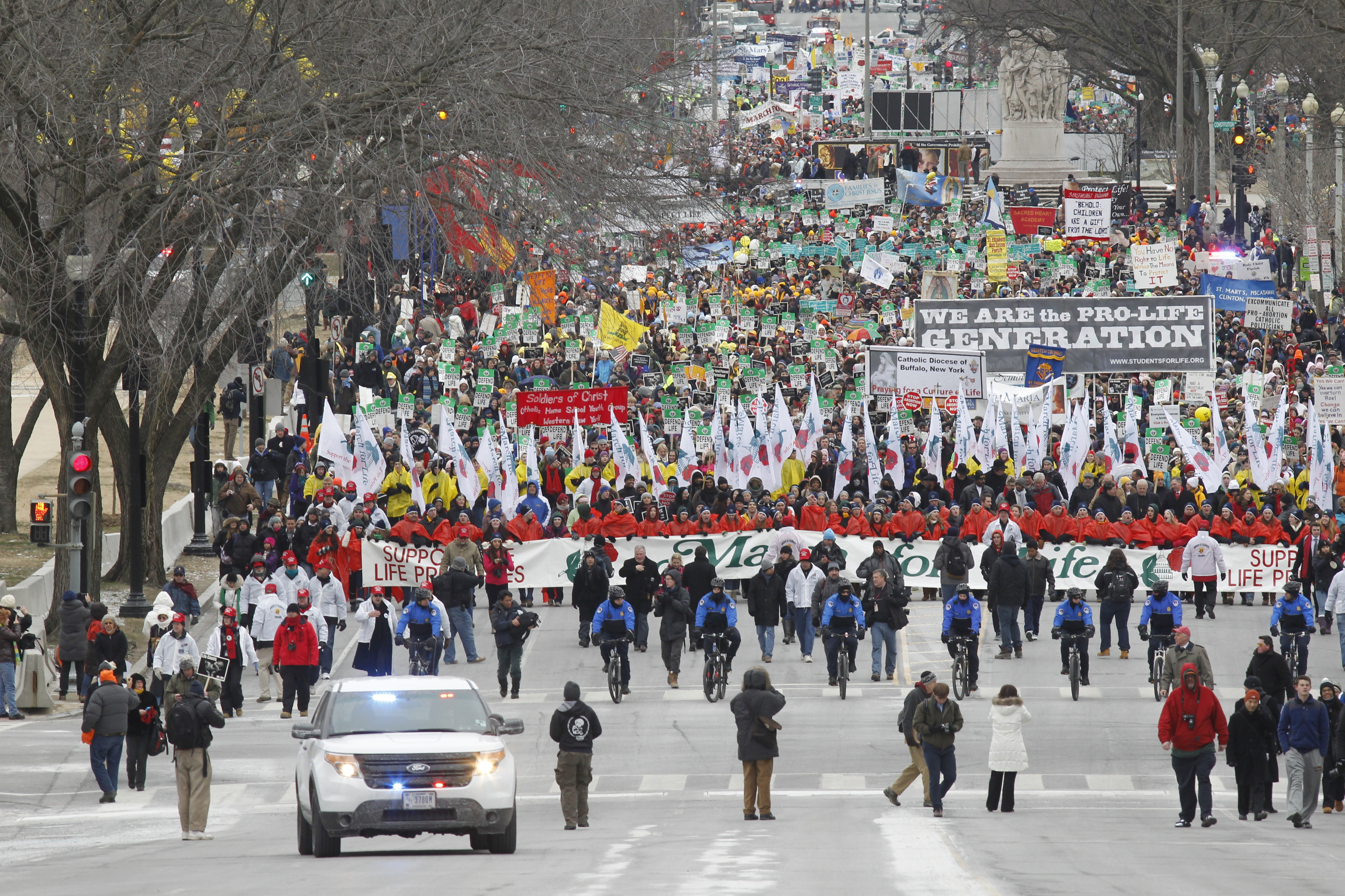 March For Life participants make their way to U.S. Supreme Court building in Washington