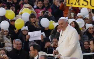 Home|General Audience: Jesus chose to come to the world as part of a family|Balloons, sign wish Pope Francis happy birthday as he arrives to lead general audience in St. Peter’s Square at Vatican