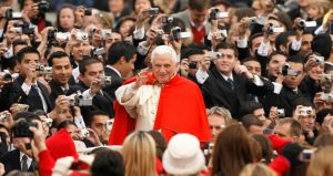 Pilgrims have their cameras ready as Pope Benedict XVI makes his way through the crowd in St Peter’s Square at the Vatican before a general audience in 2007. The 85-year-old pontiff said he no longer has the energy to exercise his ministry over the universal church and will resign at the end of the month. (CNS photo/Paul Haring) (Feb. 11, 2013) See BENEDICT-RESIGN (UPDATED) Feb. 11, 2013.