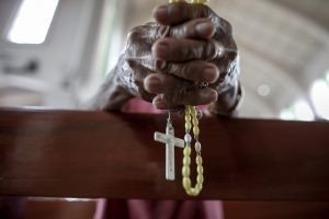 Worshipper holds rosary inside basilica in Philippines