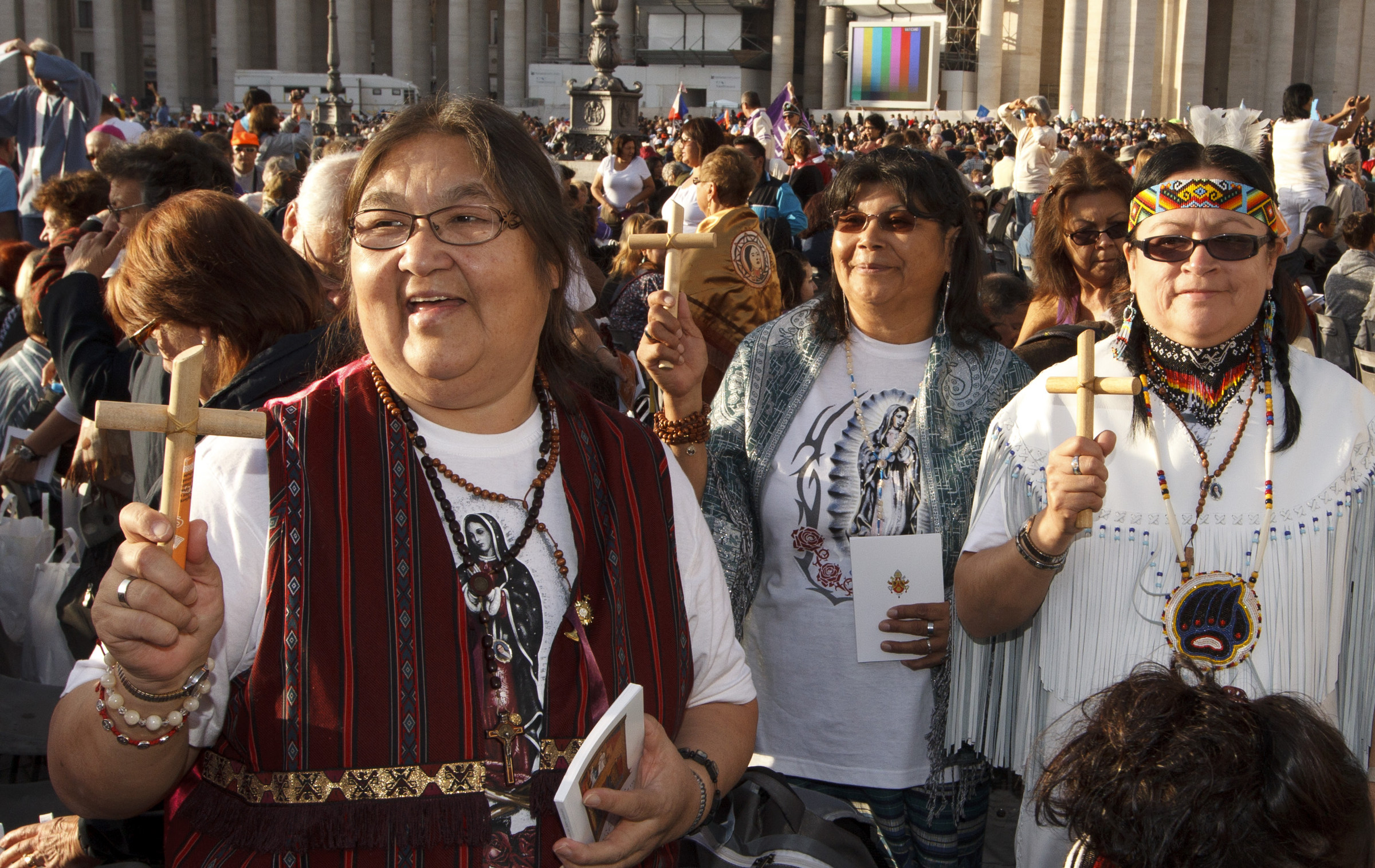 NATIVE AMERICANS HOLD CROSSES BEFORE START OF CANONIZATION MASS