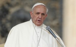 Pope Francis leads the crowd in prayer as he begins his general audience in St. Peter’s Square at the Vatican Sept. 11. (CNS photo/Paul Haring) (Sept. 11, 2013) See POPE-AUDIENCE Sept. 11, 2013.