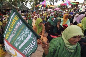 Home|Philippine cardinal praises both sides in peace deal for ‘wisdom’|A Moro woman holds a flag of the Moro Islamic Liberation Front during a gathering in southern Philippines