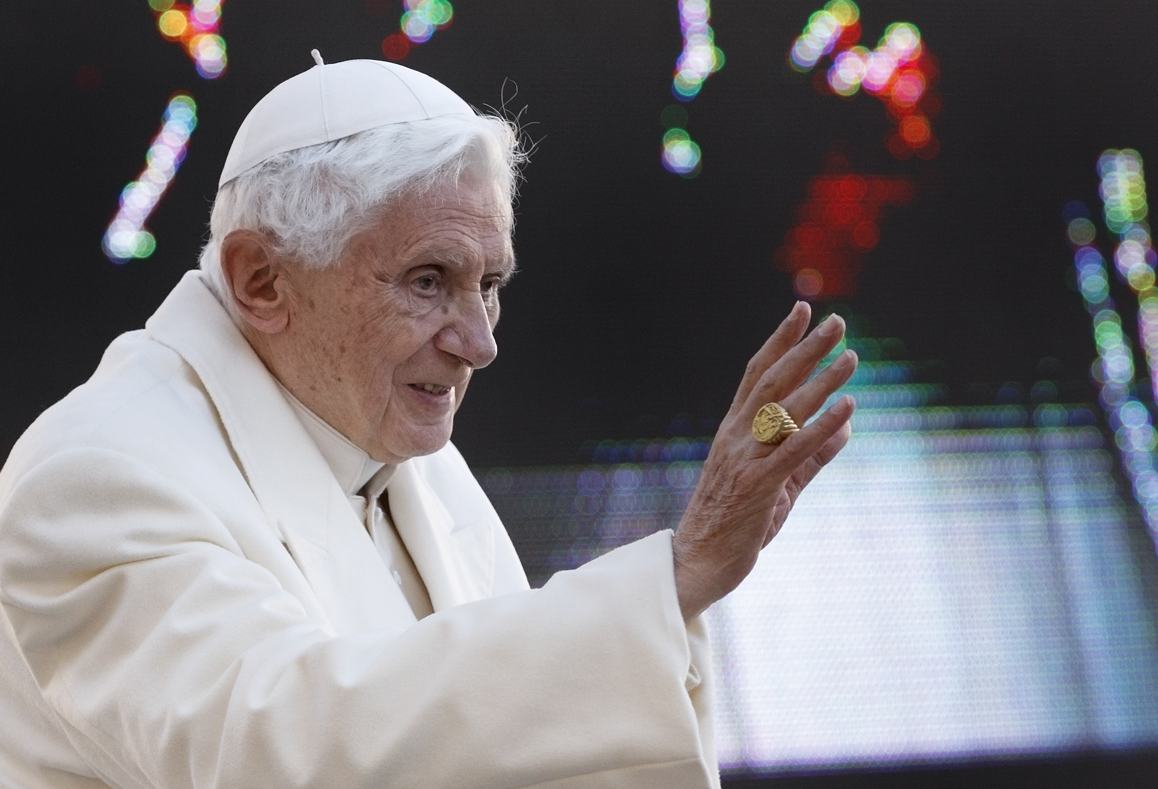 Pope Benedict XVI waves as he arrives to lead his final general audience in St. Peter’s Square at the Vatican Feb. 27. (CNS photo/Paul Haring) (Feb. 27, 2013) See POPE-AUDIENCE Feb. 27, 2013.