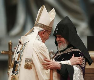 Home|Pope Francis quotes St John Paul II’s reference to ‘First Genocide of the 20th Century’|Pope Francis embraces Catholicos Karekin II of Etchmiadzin during Mass marking 100th anniversary of Armenian mass killings