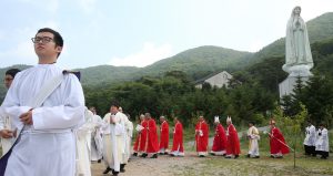 A Catholic ceremony takes place at the historic Chon Jin Am site in Gwangju, South Korea, June 24. The country is set to host about 30 countries for a five-day Asian Youth Day event that is focused on formation and spiritual life, particularly for youth leaders. The event will coincide with Pope FrancisÂ’ visit to that country, where he is scheduled to beatify 124 Korean martyrs. (CNS photo/YONHAPNEWS via EPA) (July 29, 2014) See ASIA-YOUTH July 29, 2014.