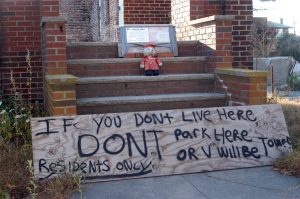Just footsteps away from St. Francis de Sales School in the Belle Harbor neighborhood of the New York borough of Queens stands this empty shell of a home Oct. 26 that was destroyed by the fires brought on by Hurricane Sandy one year ago. (CNS photo/Marie Elena Giossi, The Tablet) (Oct. 30, 2013) See SANDY-MASS Oct. 30, 2013.