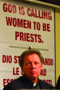 Maryknoll Father Roy Bourgeois is pictured in Rome during a media conference in this Oct. 17, 2011, file photo. The Congregation for the Doctrine of the Faith has dismissed him from the priesthood because of his participation in the invalid ordination of a woman and simulated Mass, the Maryknoll Fathers and Brothers announced Nov. 19. (CNS photo/Paul Haring) (Nov. 19, 2012) See BOURGEOIS-DISMISSAL Nov. 19, 2012.