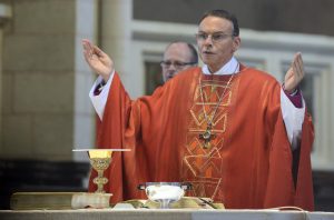 Bishop Franz-Peter Tebartz-van Elst presides over a church service in Limburg, Germany, Sept. 9, 2013. On March 26 Pope Francis accepted the resignation of the German prelate, and the Vatican said he will be given different duties. (CNS photo/Harald Oppitz, KNA-Bild via Reuters) (March 26, 2014) See LIMBURG-RESIGN March 26, 2014.