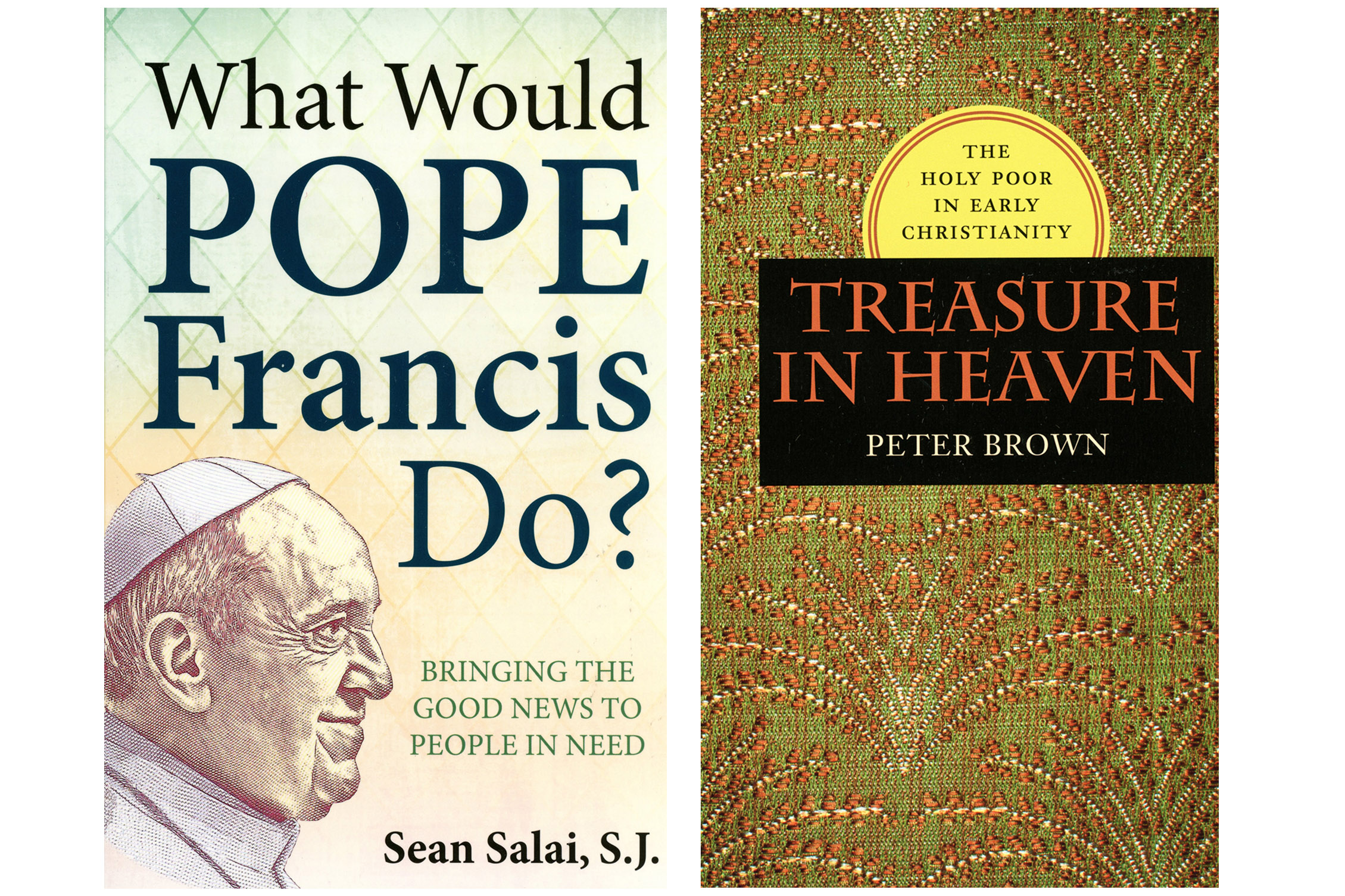 These are the covers of “What Would Pope Francis Do? Bringing the Good News to People in Need” by Sean Salai, SJ and “Treasure in Heaven: The Holy Poor in Early Christianity” by Peter Brown. The books are reviewed by Rachelle Linner. (CNS) See BOOKS-POOR Sept. 30, 2016.
