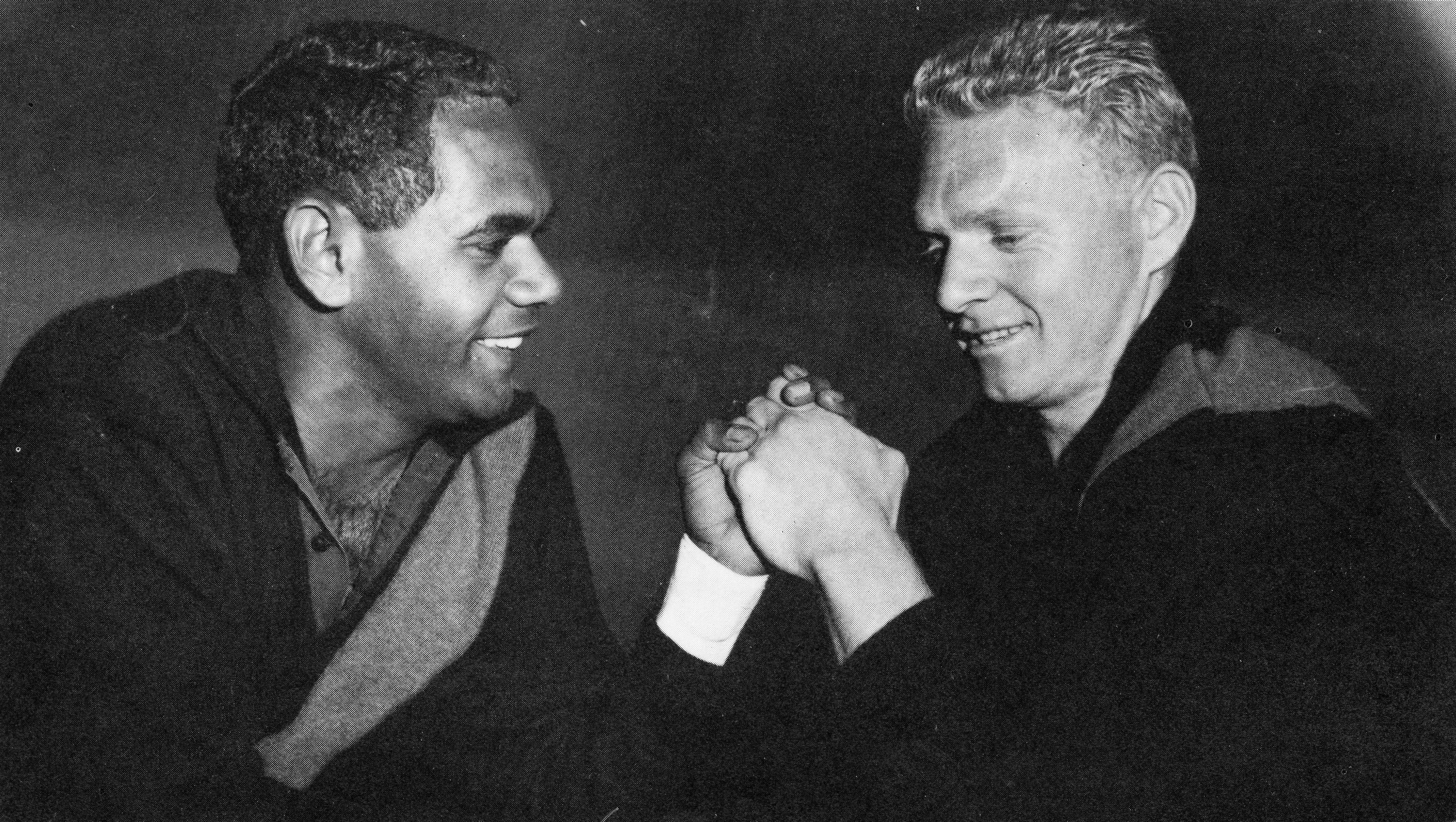 Harold Little, the first student to enter the Pallottine’s Rossmoyne Training Centre and benefit from Fr Luemmen’s mentoring, became a well known footballer, pictured left, with Barry Cable.