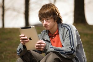 5 MARCH 2012 — St. Louis, Mo. — Austin Krueger, 16, uses an iPad ap as a test prep for SAT tests. Photo by Lisa Johnston St. Louis Review