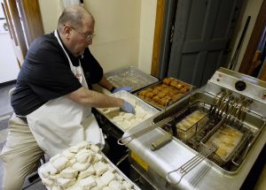 Pastor prepares fish during Friday fish fry at Pennsylvania church