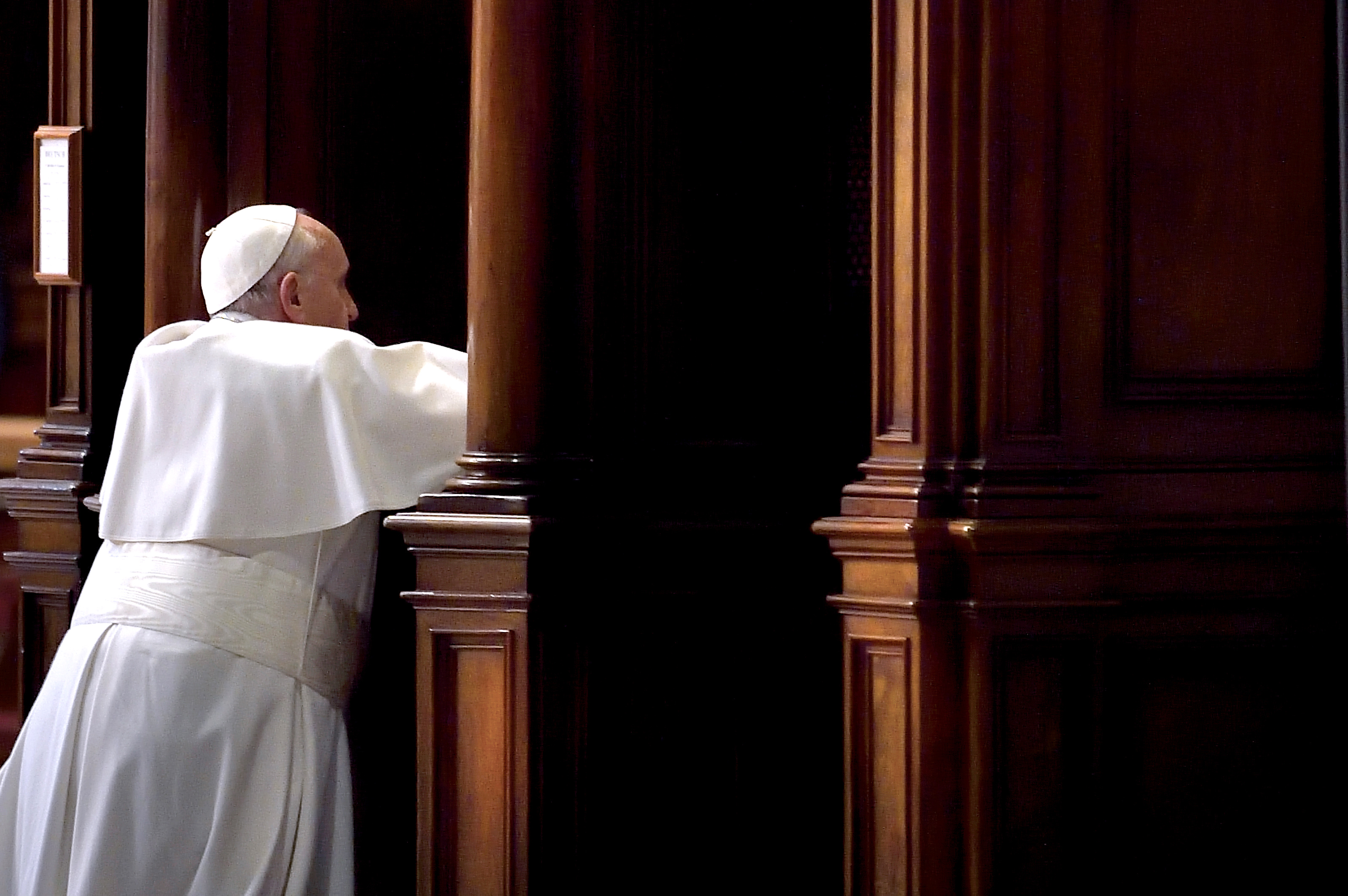 Pope Francis goes to confession during Lenten penance service in St. Peter’s Basilica