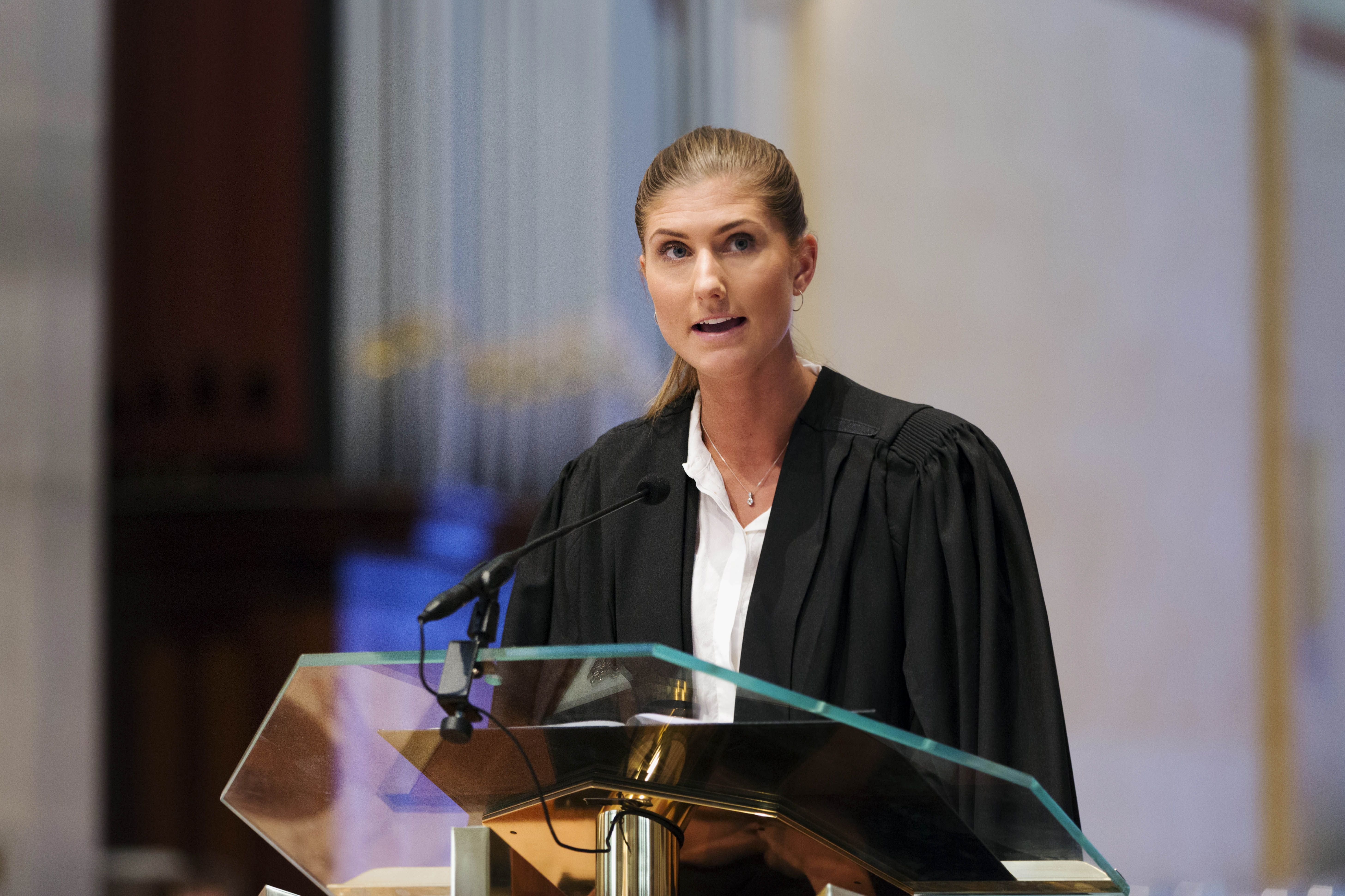 Medicine graduate Pia Jelinek reads the Prayers of the Faithful at the Graduation Mass. Photo: Ron Tan