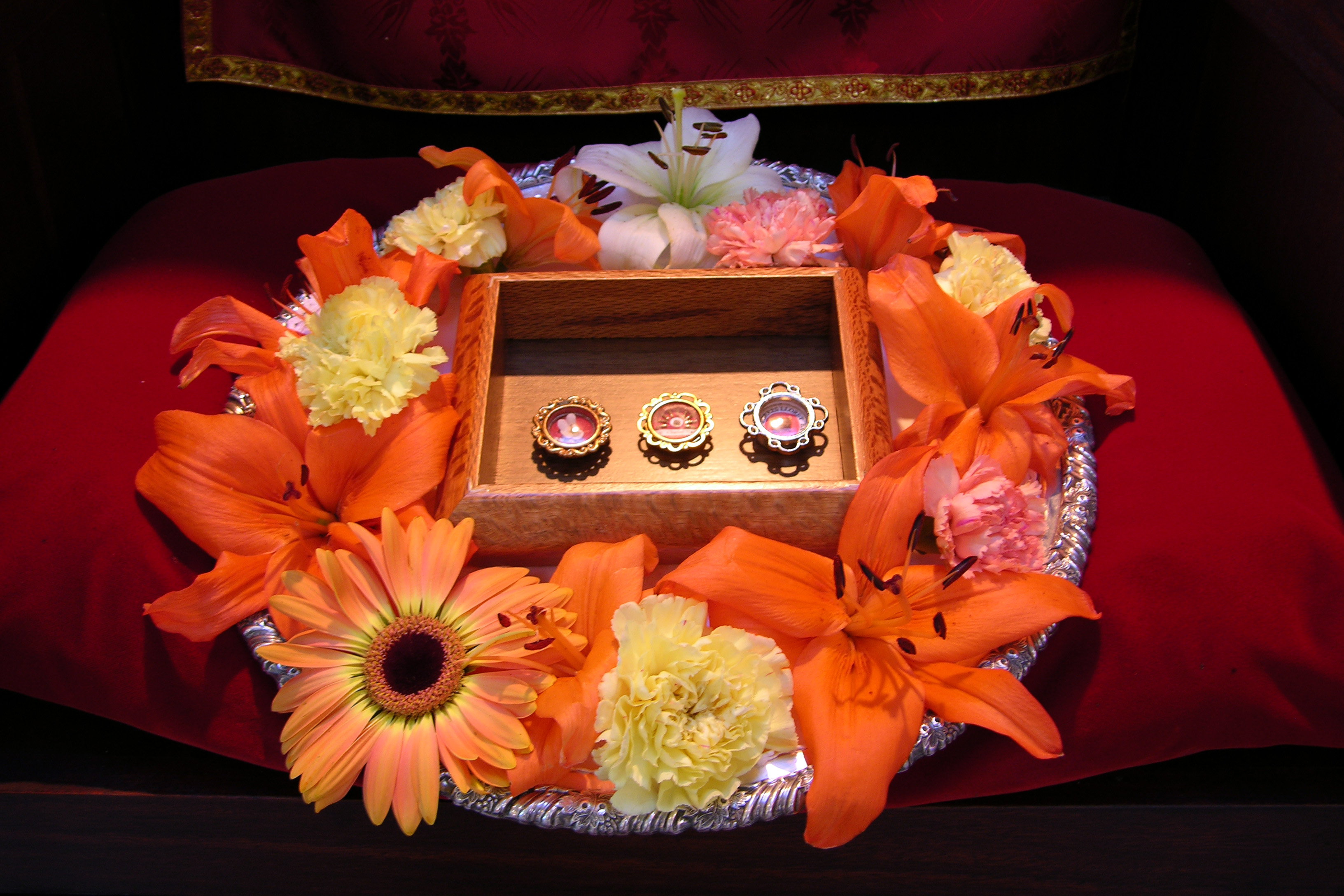The relics of Pope Pius X, St Peter Chanel and St Mary MacKillop that were placed inside the altar of the Chapel at Redemptoris Mater Seminary in 2005. Photo: Jamie O’Brien.