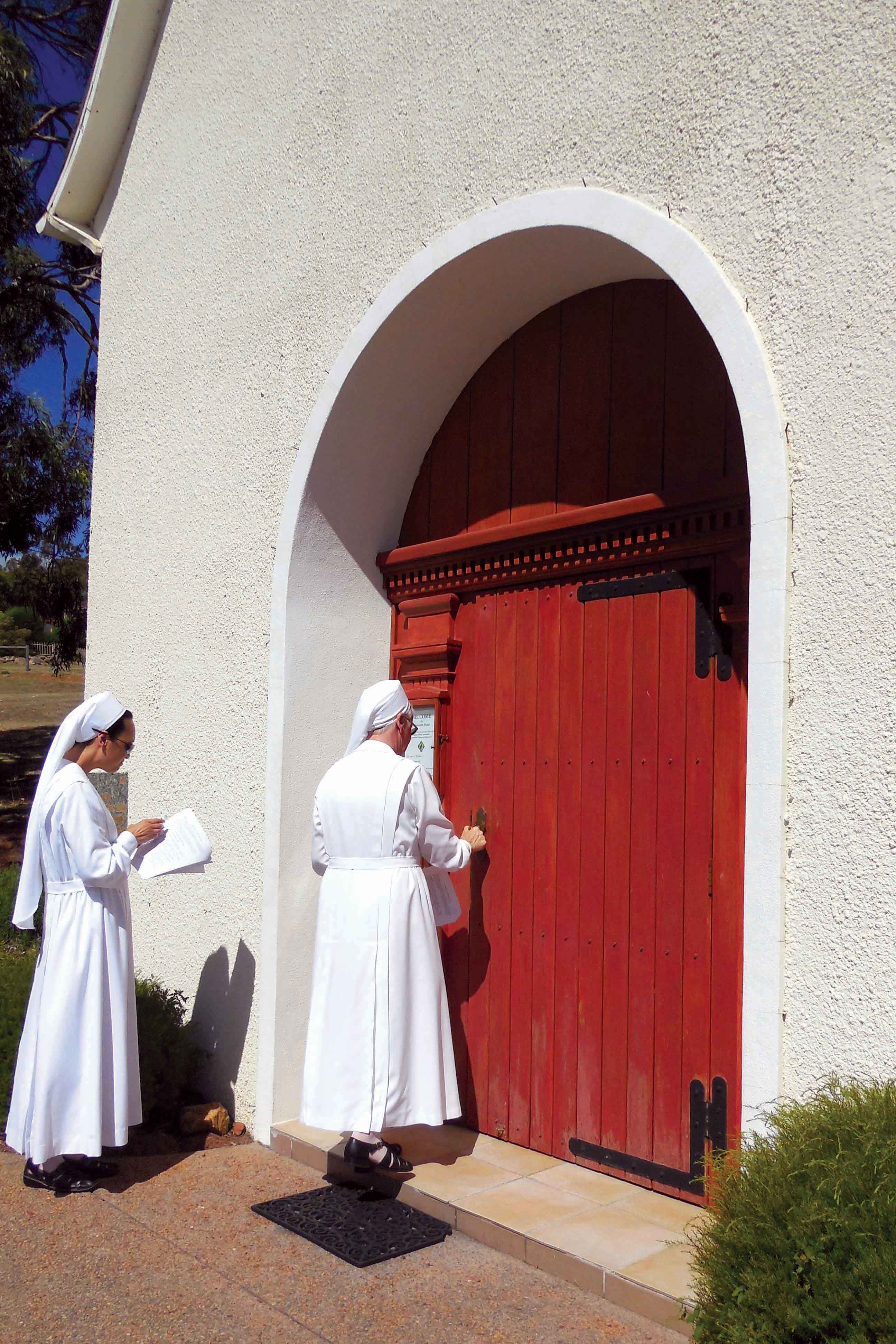 Sisters of the Schoenstatt Shrine in Mt Richon, WA, open the Holy Door to their Church on 13 December 2015. Photo: Supplied