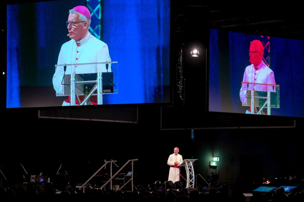 Archbishop Timothy Costelloe SDB welcome more than 5500 pilgrims to ACYF19, which was held at the Perth Convention and Exhibition Centre from 8 to 10 December. Photo: Iceberg Media.