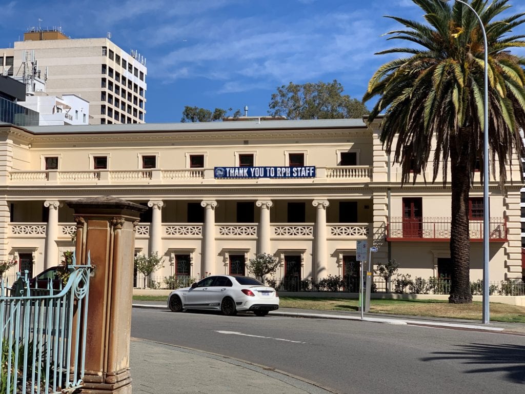 In gratitude for all the work being done by the staff at the neighbouring Royal Perth Hospital, the Cathedral Clergy and Staff have had a large banner hung from the Cathedral House verandah. Fr Sean told The Record that it was a small gesture of support and gratitude. In addition the Cathedral has made the Cathedral car park available to hospital staff, something welcomed by hospital management. ‘In these times I hope we can all show our support to doctors, nurses, emergency personnel and so many people who are just making sure we continue to have the services we need,’ Fr Sean said.